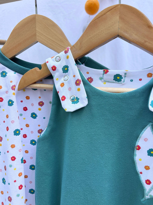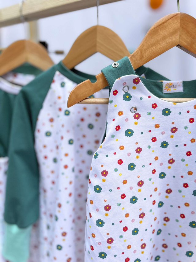 Des petites fleurs discrètes et colorées. Confectionnée dans les tissus exclusifs de la collection Rouki et Capucine, elle est aussi pratique que joyeuse. Son jersey souple en coton bio GOTS assure confort, durabilité et liberté de mouvement, y compris avec des couches lavables.